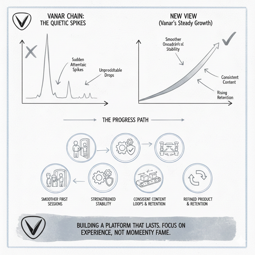 Over the last day, I did not observe a single clear moment that would change this adoption framework by itself, and that is not a negative, because the most important progress for a consumer first ecosystem often happens in the quiet work that improves onboarding, strengthens stability, tightens the content pipeline, and refines product loops so retention rises steadily rather than spiking unpredictably. If Vanar is moving in the right direction, the clearest evidence will not be dramatic, it will be visible in smoother first sessions, fewer failed experiences during peak moments, more consistent content cadence, and retention curves that stop collapsing after the first week.