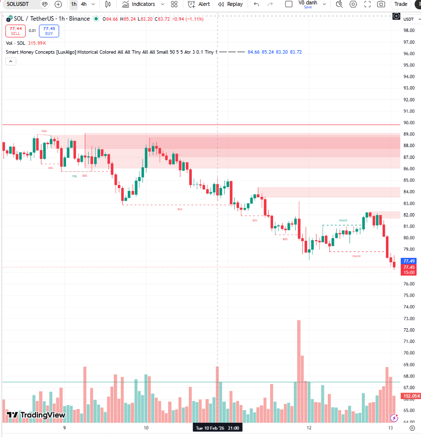 The market tends to recover to the highest liquidity area. Therefore, the likelihood of SOL having a bounce back to $82.00 to liquidate this Short position is very high before deciding on the next trend.