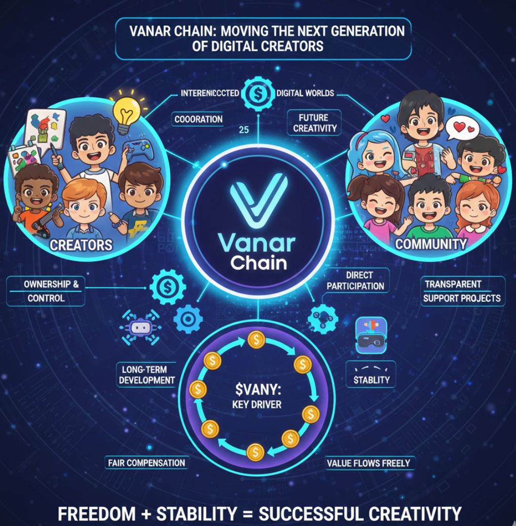 This creative economy is supported by VANRY. It assists creators to receive fairly, compensate their communities, and facilitate value to flow easily throughout the ecosystem. The creators are able to employ vanar to drive their own digital economies instead of relying on external systems. This provides a closer relationship between the audience and the producer.