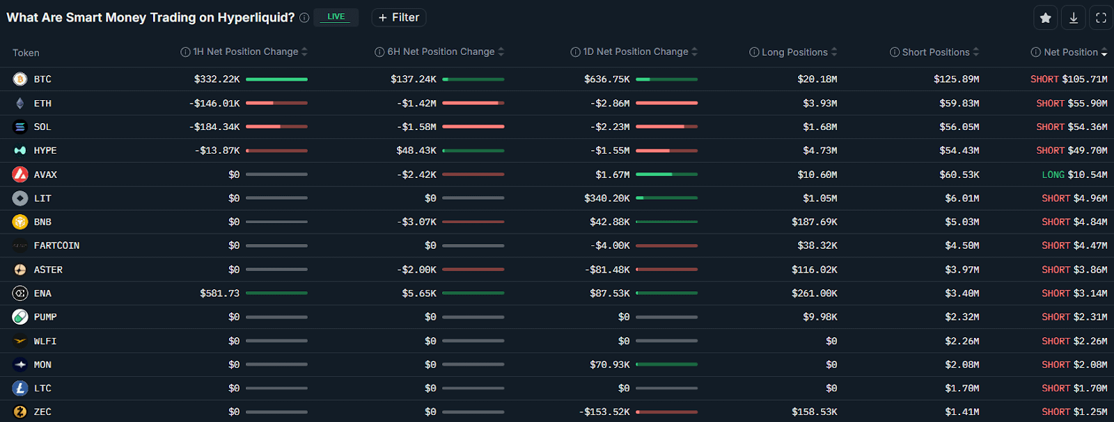 • “Smart money” traders currently hold $105M net short in BTC