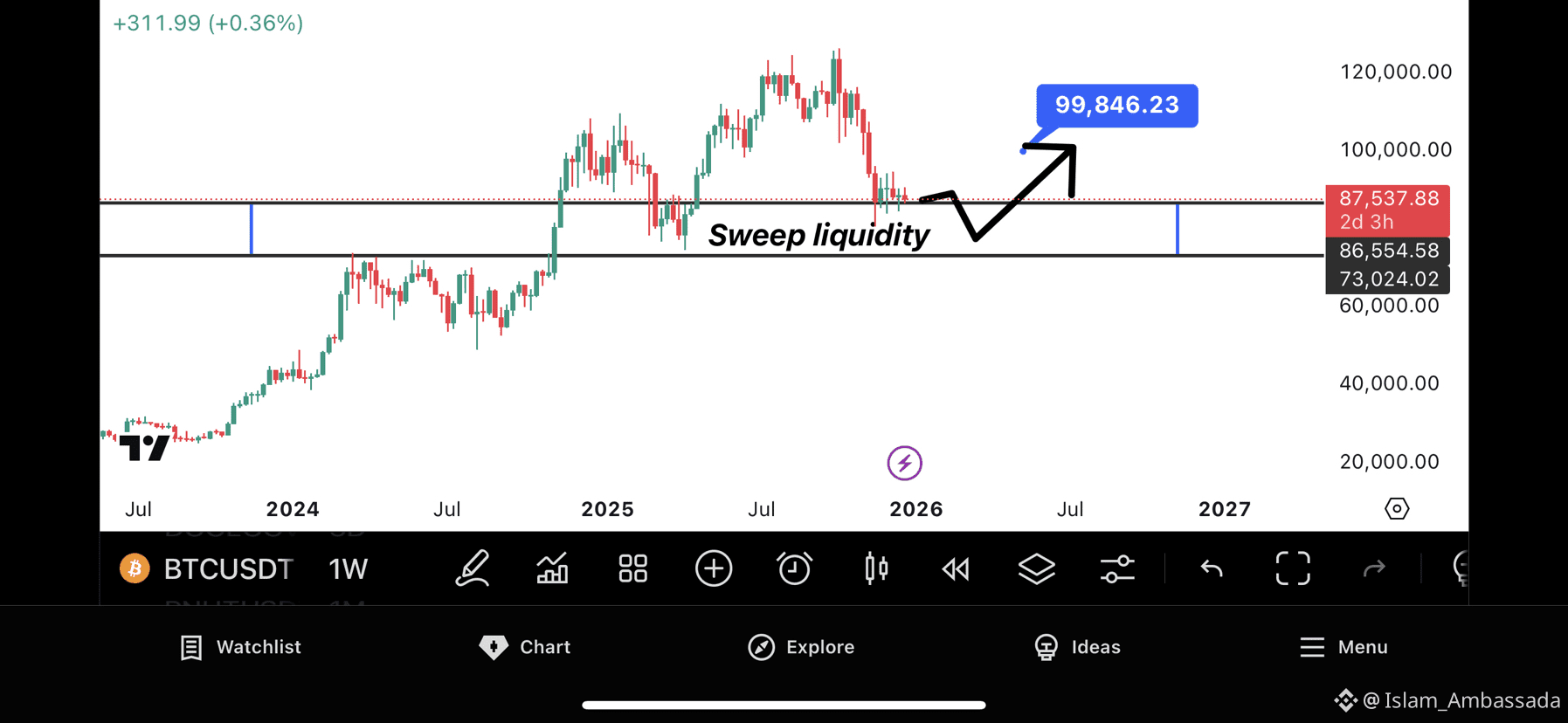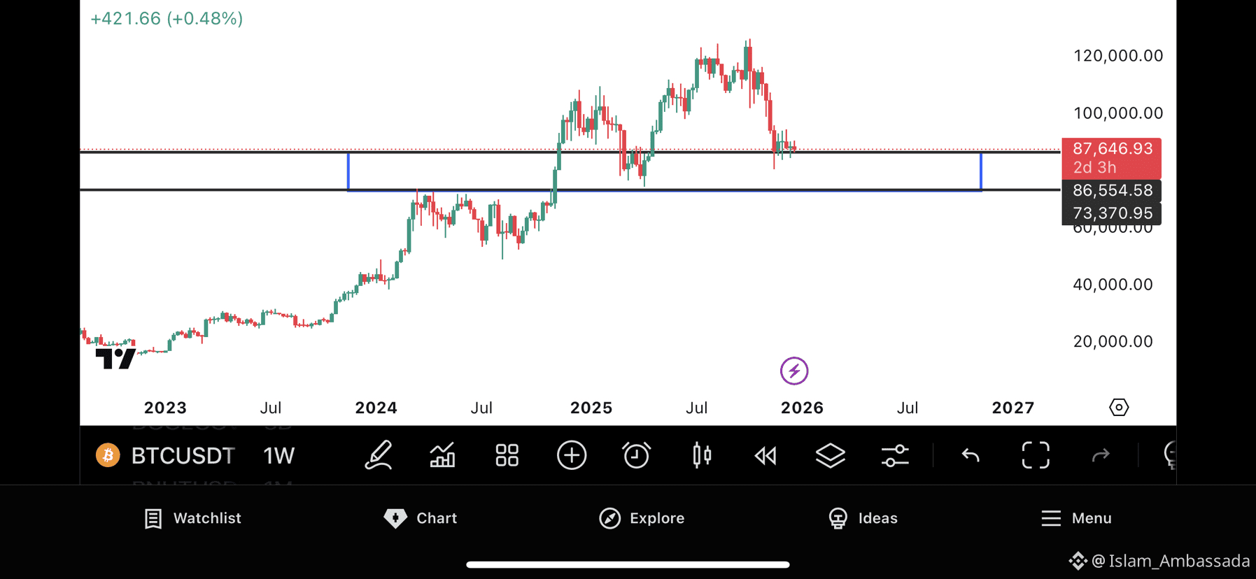 It is less likely that Bitcoin will break to less zones before moving to 100$k so far as bitcoin stays within the range