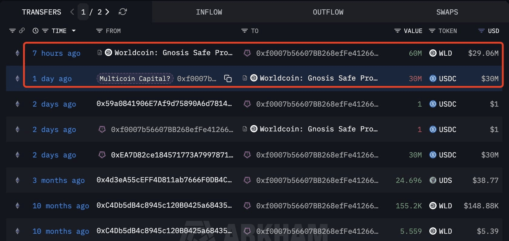 On-chain data has added an additional layer of confidence to WLD's current setup. According to Lookonchain, on December 25, a wallet (0xf000) linked to Multicoin Capital spent $30 million in USDC to acquire 60 million WLD at an average price of $0.50 through an OTC deal.