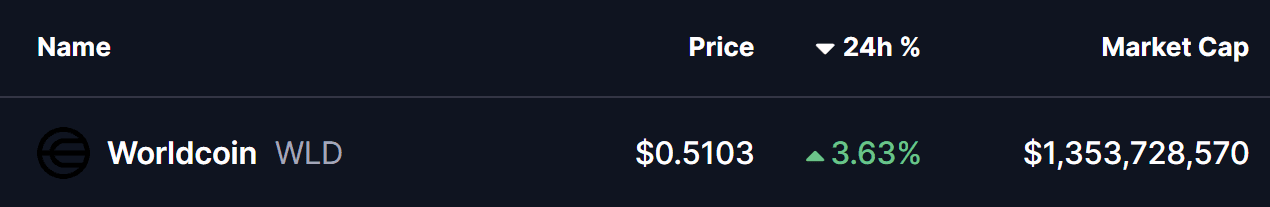 The cryptocurrency market in general shows modest strength, with Bitcoin (BTC) and Ethereum (ETH) trading in the green. This steady performance among the major assets has helped stabilize the overall market sentiment, creating space for select altcoins — including Worldcoin (WLD) — to develop constructive technical setups.