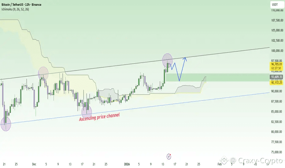 Technically, BTCUSDT remains comfortably positioned within an ascending channel on the 12-hour timeframe. The market continues to print higher highs and higher lows, confirming sustained bullish control. Recent pullbacks appear healthy and corrective, serving to reset momentum rather than signaling any structural weakness.