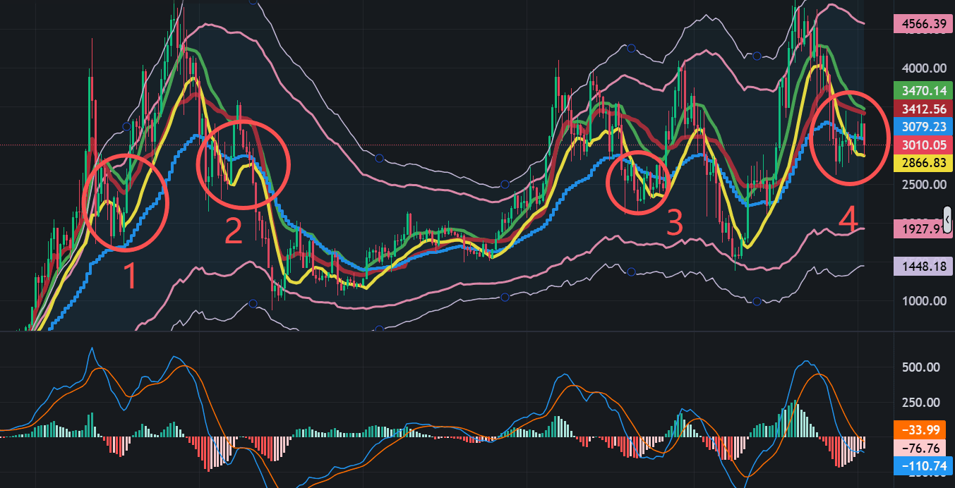 From the perspective of the time window, it is currently nearing the end of consolidation. Pay attention to whether the position at 2850 (yellow line) will break below the weekly closing. If it breaks, it may follow the situation marked by the red circle 2; otherwise, you can hold on and wait for the MACD to cross above, aiming for a market movement that reaches at least 4000 points.