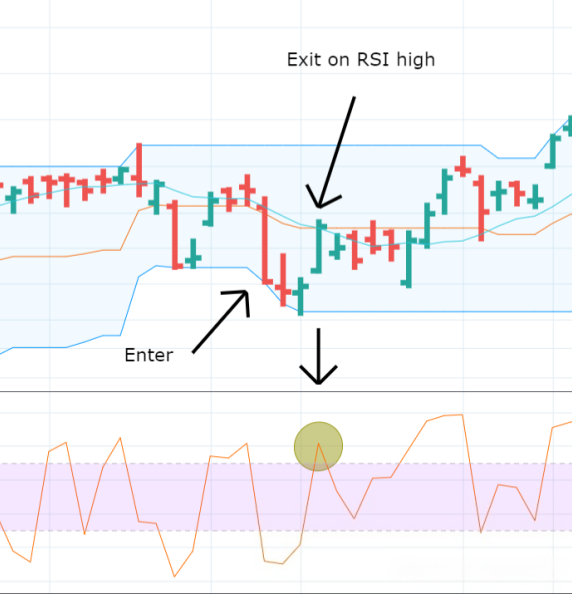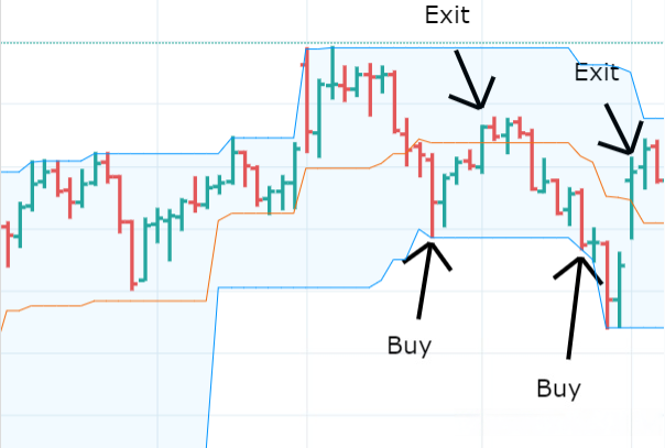In the example chart below, we go long when the market makes a new 20-candle low, and close the position when the price crosses above the middle band. This is a very common trading strategy, and many traders use similar approaches in different ways.