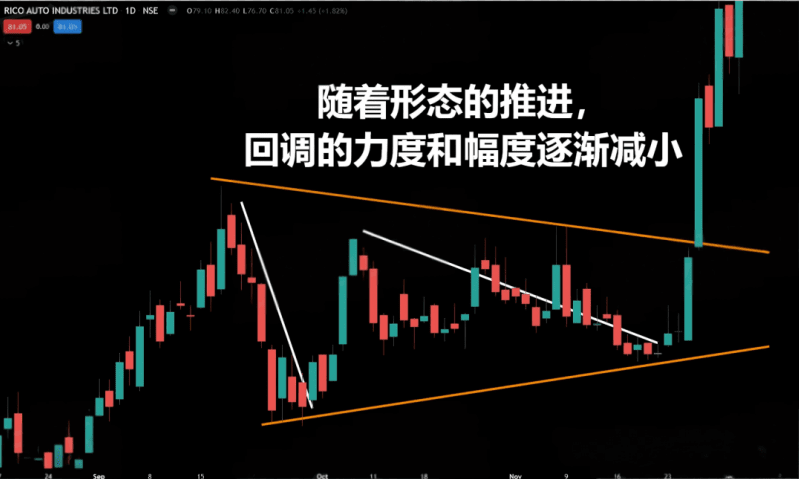 1. Each time the price pulls back from a high point, the magnitude should be smaller than the previous pullback, representing that more and more weak positions in the market are being absorbed. The best pattern: higher lows appear before the breakout.
