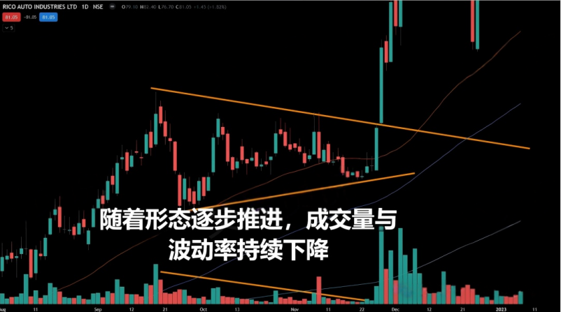 As the volatility contraction pattern progresses, the volume on the right side should decrease significantly. This indicates that the sellable shares in the market are being gradually absorbed, and once the supply is fully digested, stock prices can restart their upward trend.