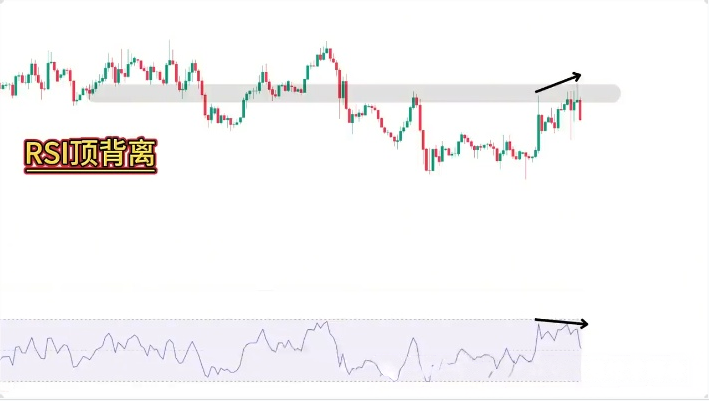 Signal verification: open RSI and find a top divergence (price makes a new high, RSI makes a lower high), further confirming that the trend is about to reverse;
