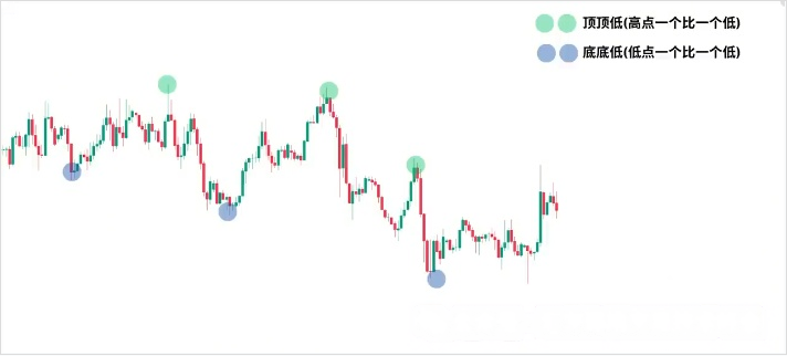 Destruction of the uptrend: originally it was 'higher highs + higher lows', but later the price stops making new highs and breaks below previous low points, forming a 'lower lows + lower highs' downward structure—indicating the end of the uptrend and the beginning of a decline;