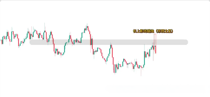A failure test signal appears: the price attempts to break this resistance level but forms a 'long upper shadow candlestick (inverted hammer)'—this is a typical 'breakout failure', indicating strong selling pressure above;