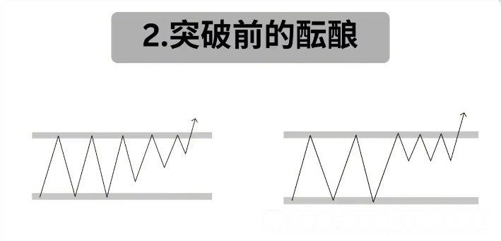 What is 'brewing before a breakout'? It means that when the price approaches key levels (resistance/support), it no longer fluctuates significantly but starts to consolidate slightly—this is accumulating momentum for the breakout.