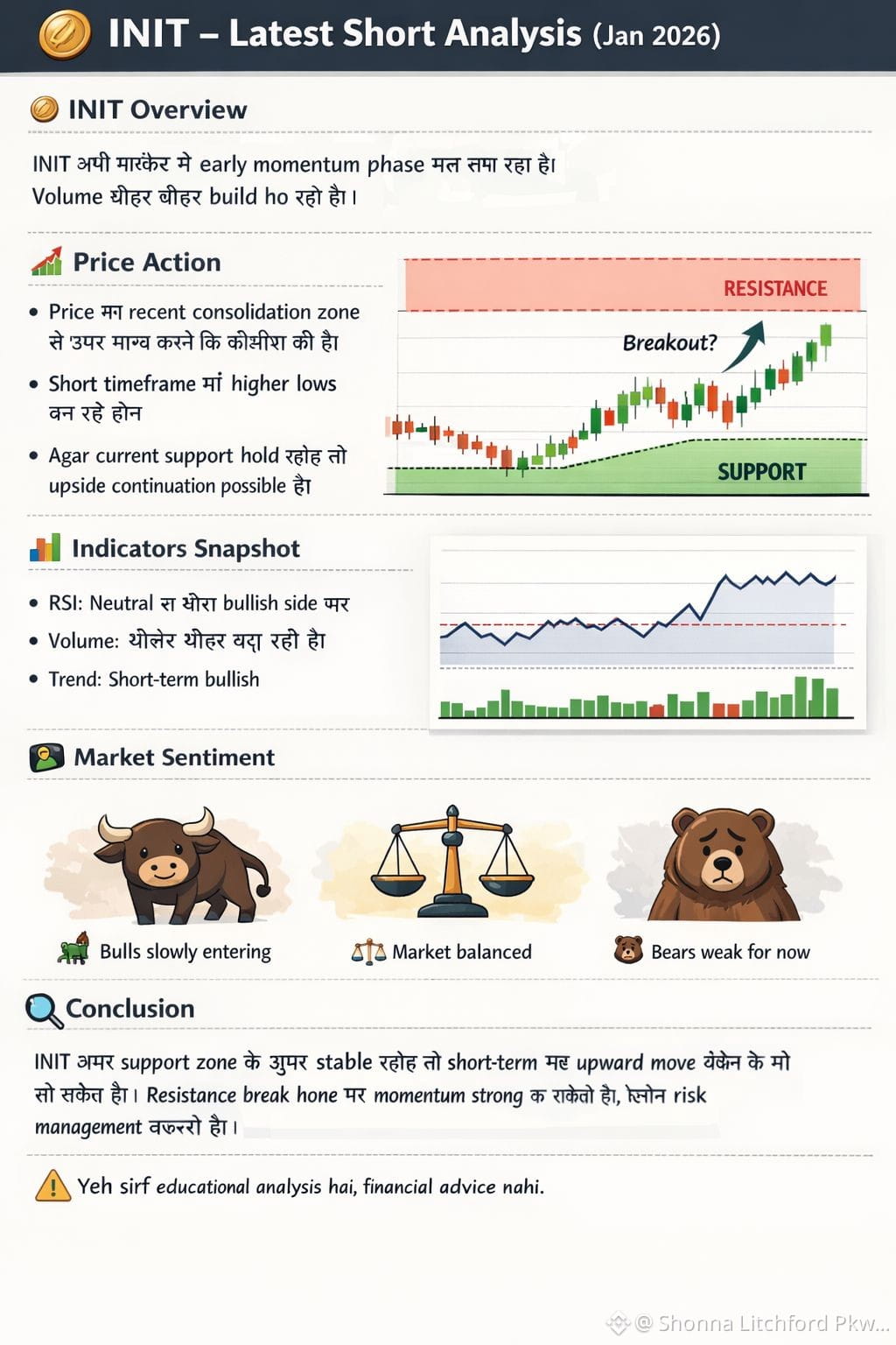 INIT abhi market me early momentum phase me lag raha hai. Volume dheere dheere build ho rahi hai, jo short-term traders ke liye positive sign hota hai.