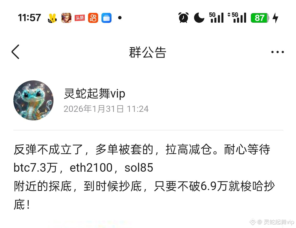 因为大盘暴跌,50个仓位,加大了保证金的容错率,导致了所有仓位被清仓,enso本来可以赚好几倍也没了,我还会回来的。这几天先休息了,我在等大盘跌到底,我再回归!