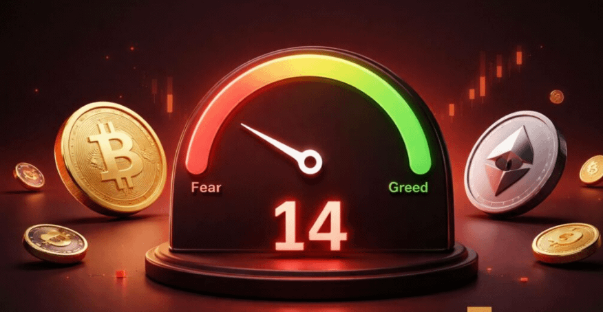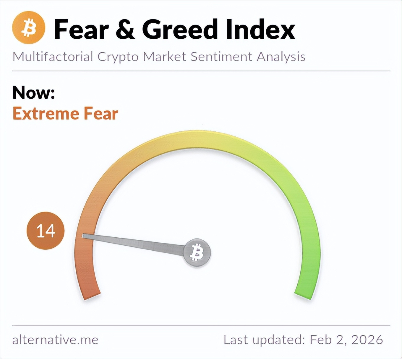 The Fear and Greed Index has plummeted from the 'Fear' range of 29 directly to 'Extreme Fear' of 14, hitting a new low in nearly six weeks. This indicates that retail sentiment has hit rock bottom.