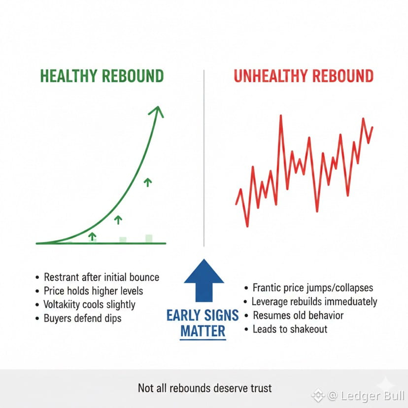An unhealthy rebound feels frantic. Price jumps, then collapses. Leverage rebuilds immediately. The market tries to resume the old behavior without resetting. That usually leads to another shakeout