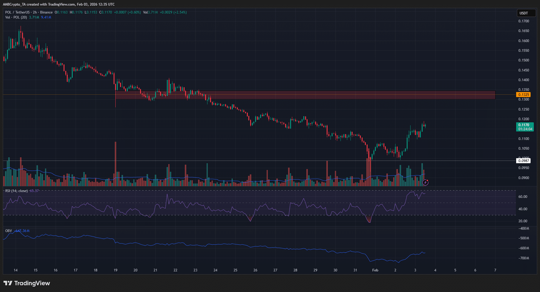 For long-term investors, it is encouraging that POL holds the psychological support level of $0.1. However, short-term traders may need to be patient and wait for the price to break through key ranges before taking action. If POL falls below $0.1 again, the decline may present a selling opportunity; if it breaks above $0.13, there may be a chance for a rebound to $0.186.