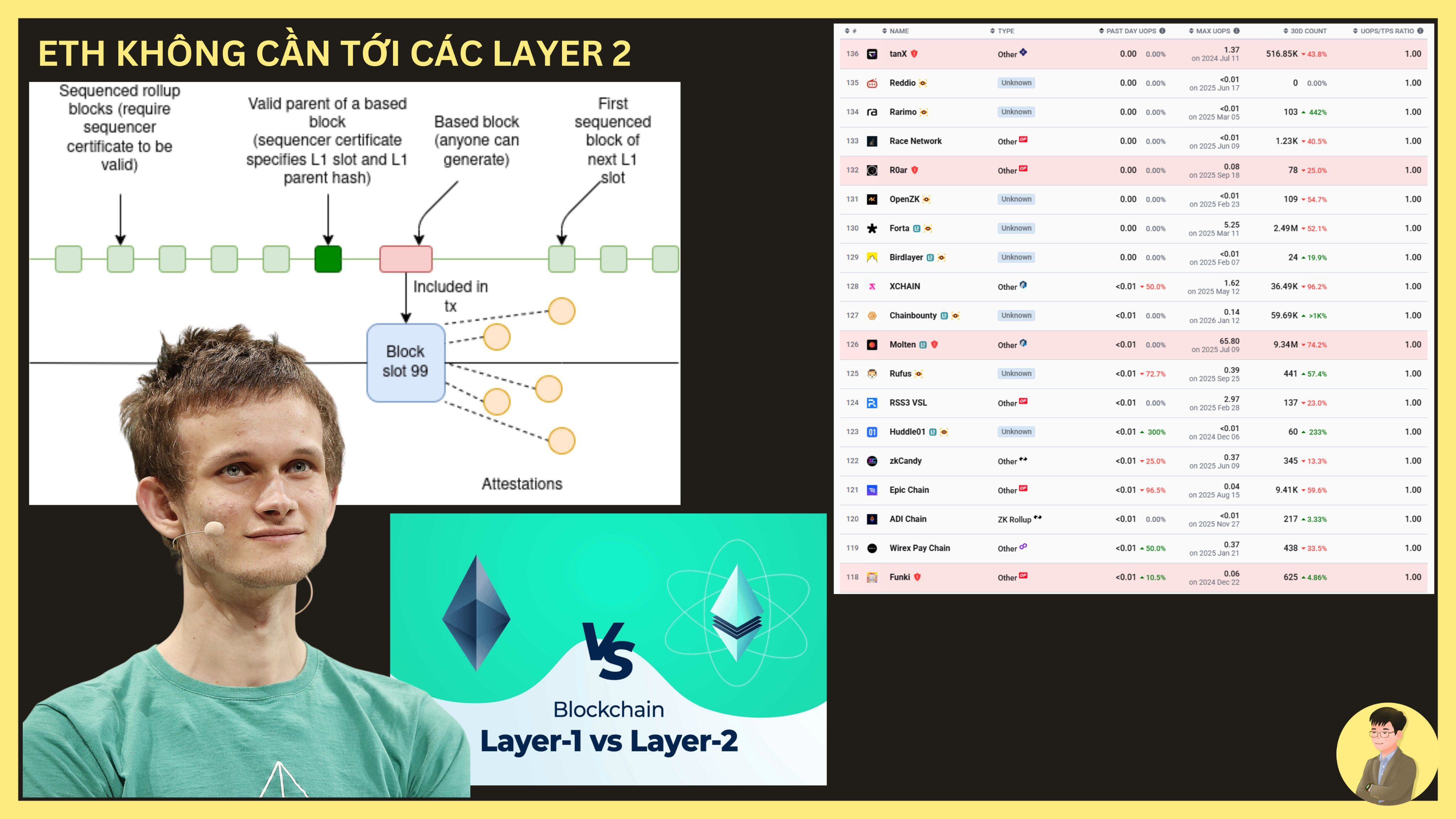 I analyzed this three years ago, at that time the market still had great faith in L2s, currently out of 135 existing Layer 2s, 109 L2s have less than 1 user operation per second.