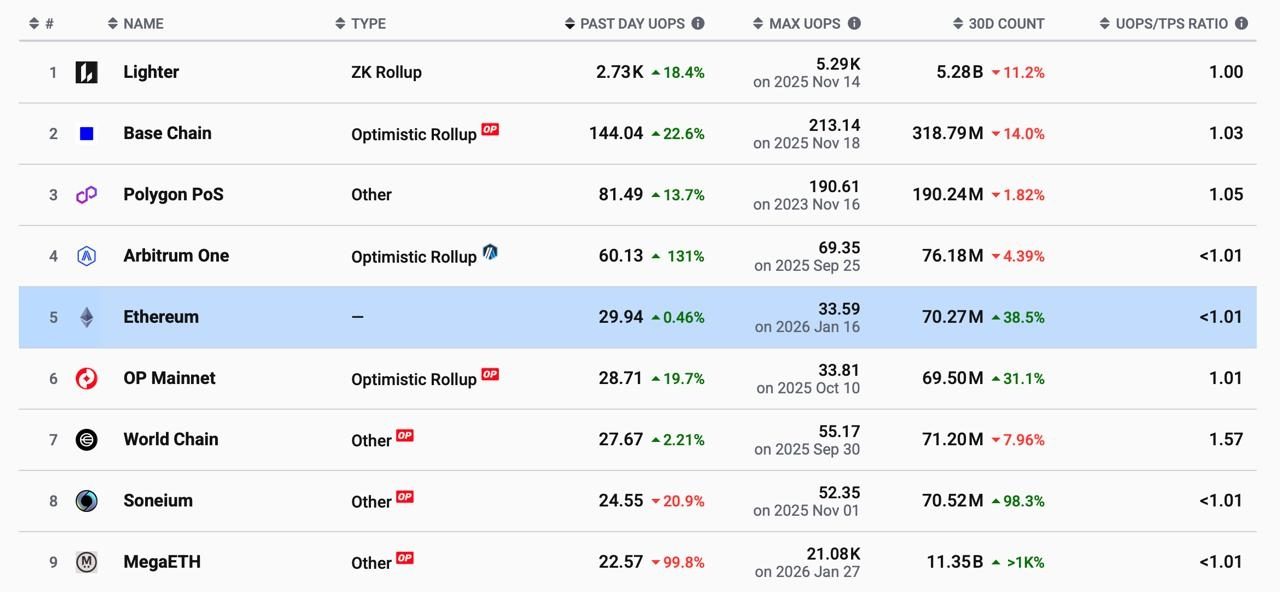 - Currently, there are ~135 L2 networks, but 109 networks recorded UOPS < 1/day → almost no real activity.