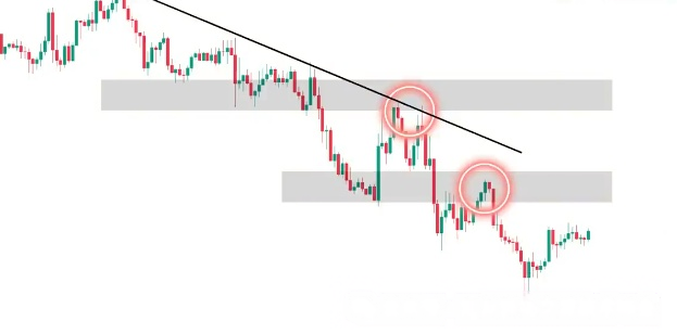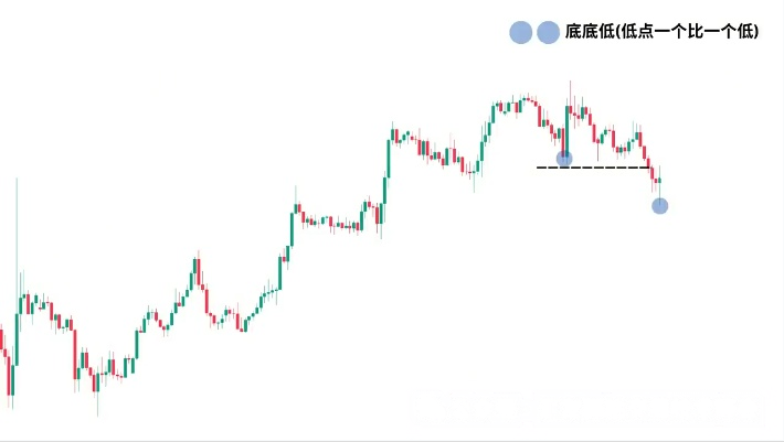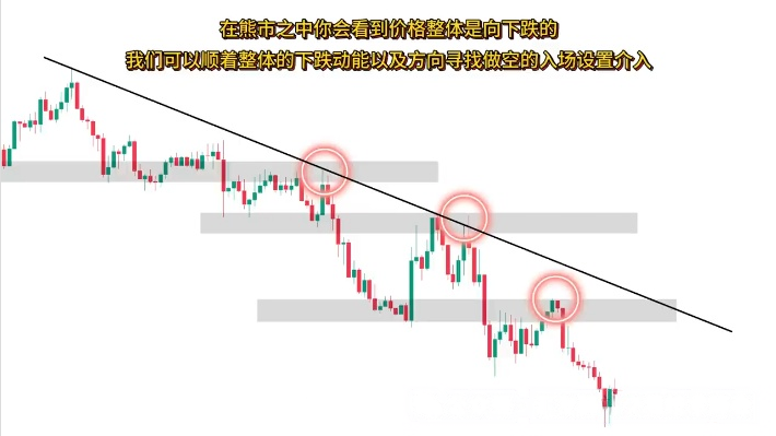 Trend structure: lower highs + lower lows: Prices are making lower highs (lower highs), and lows are also making lower lows (lower lows). When prices pull back to resistance levels or key price levels, it is an opportunity to go short.