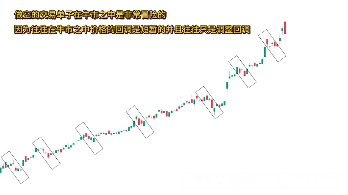 Going short in a bull market is risky because pullbacks tend to be very short-lived; they are just normal adjustments, and after the adjustments, prices will continue to rise.