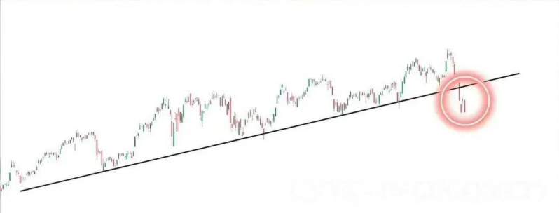 Breaking below the upward trend line: Prices break down through the previously drawn upward trend line, invalidating trend support;
