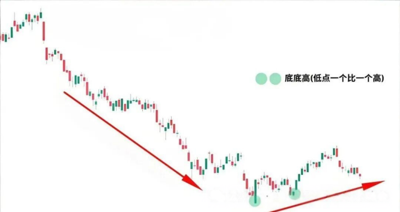 Forming higher lows: Prices no longer create new lows, with each low being higher than the last, indicating a bull market is about to start;