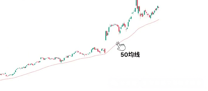 Prices consistently stay above the moving average: I often use the 50-period moving average (you can choose parameters that suit your strategy); if prices consistently run clearly above the 50-period moving average, it indicates a strong bull market, focusing on going long.