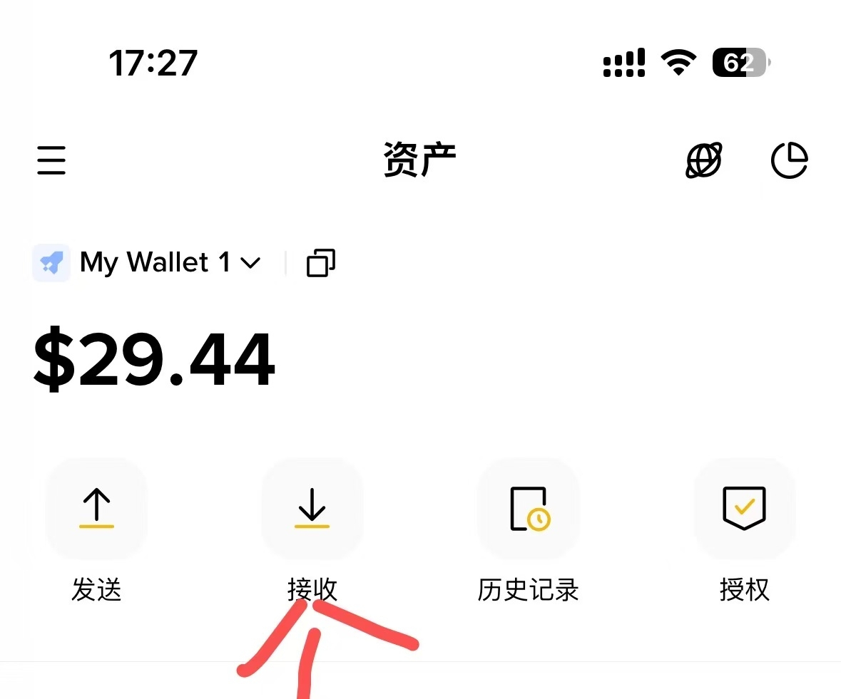 2. Click 'Receive' in the assets, as shown in the image below.