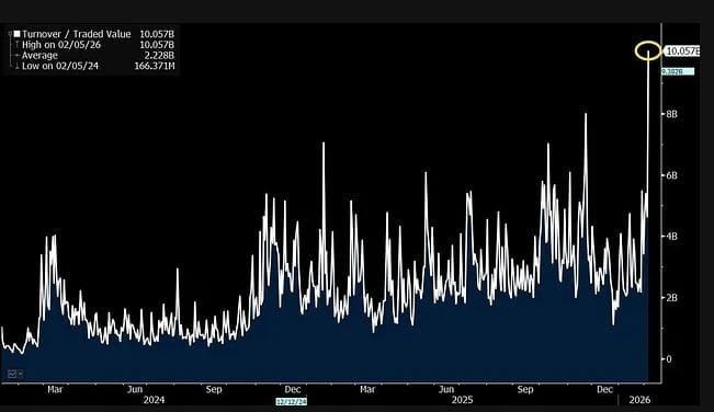 La señal más clara apareció en IBIT. Este fue el día de volumen de opciones IBIT más alto jamás registrado, casi el doble del pico anterior. Eso te dice que las instituciones no estaban sentadas con los brazos cruzados. Estaban negociando activamente la baja y la protección a gran escala.