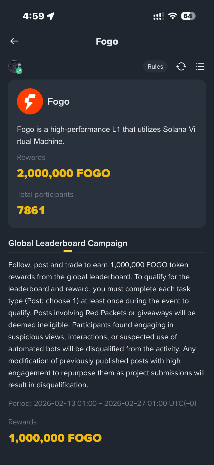 Chicos $FOGO la campaña está en curso por favor participen y agarren la recompensa solo hay 5 minutos para participar y es muy fácil obtener la recompensa si ustedes son nuevos en binance vayan al anuncio y ustedes pueden ver la campaña allí