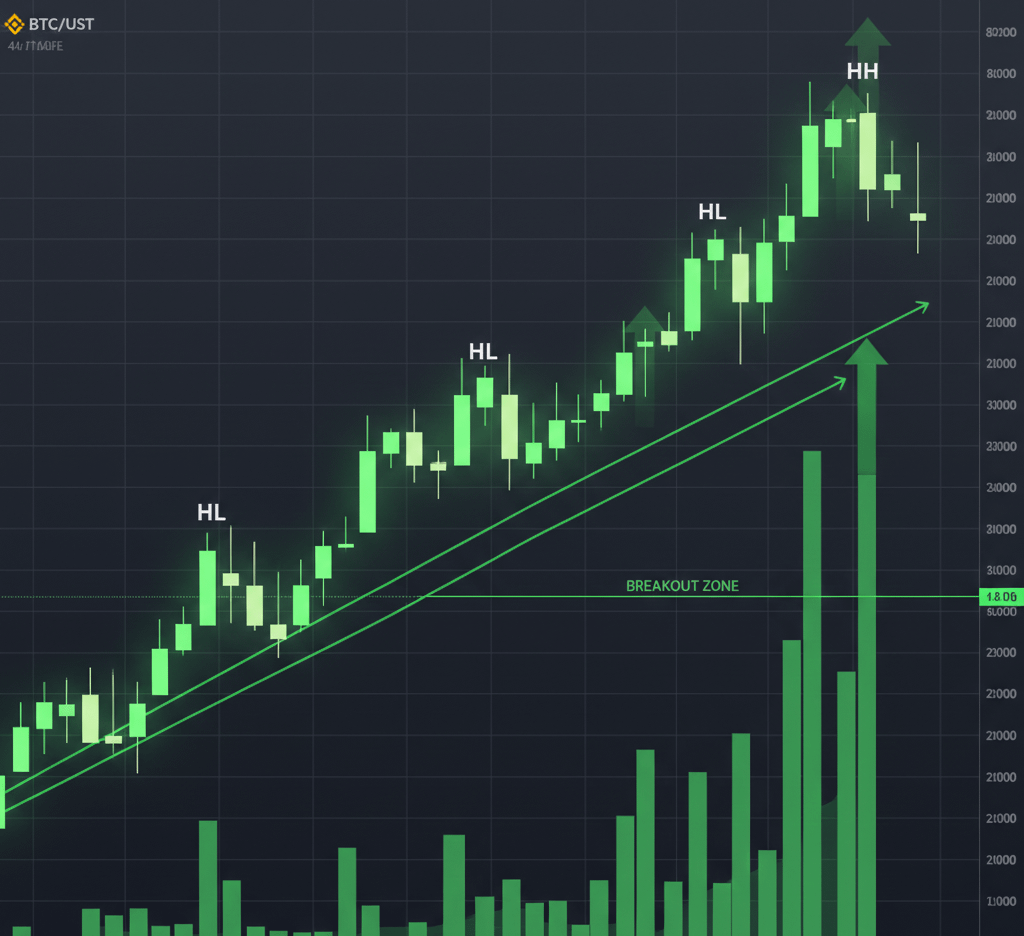 This tells you buyers are in control — dips are opportunities, not reversals.
