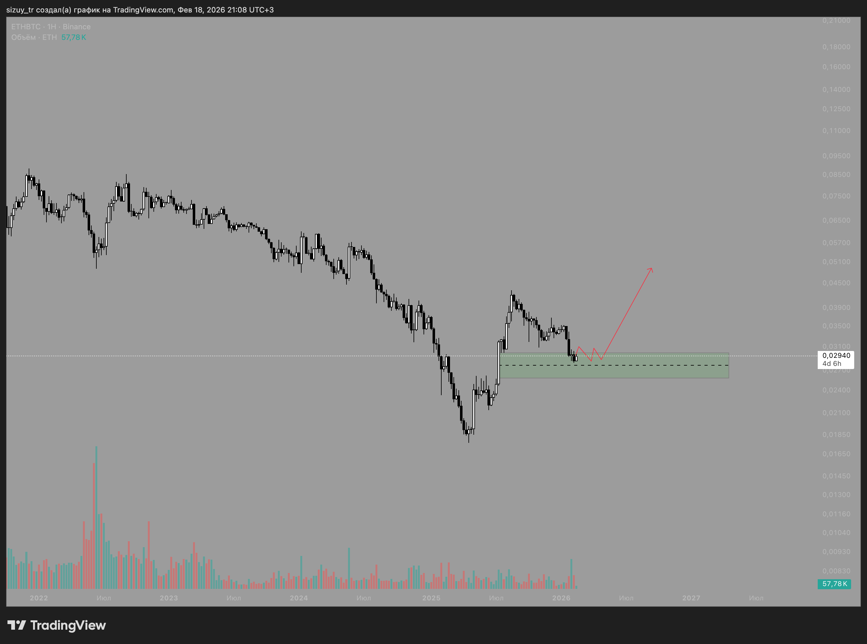 При благоприятных для лонга условиях с Доминацией, хотелось бы увидеть по ETH следующую картину: