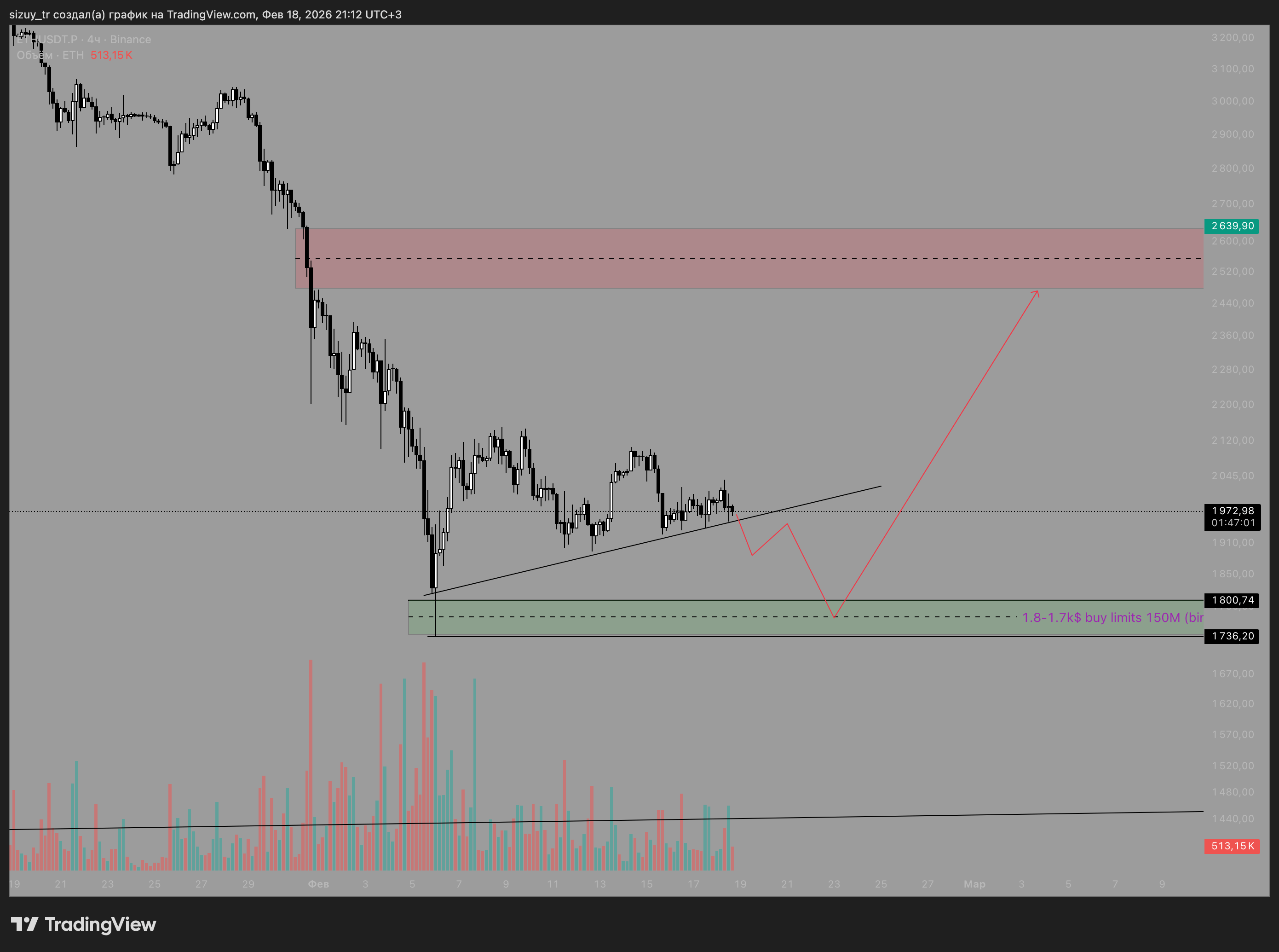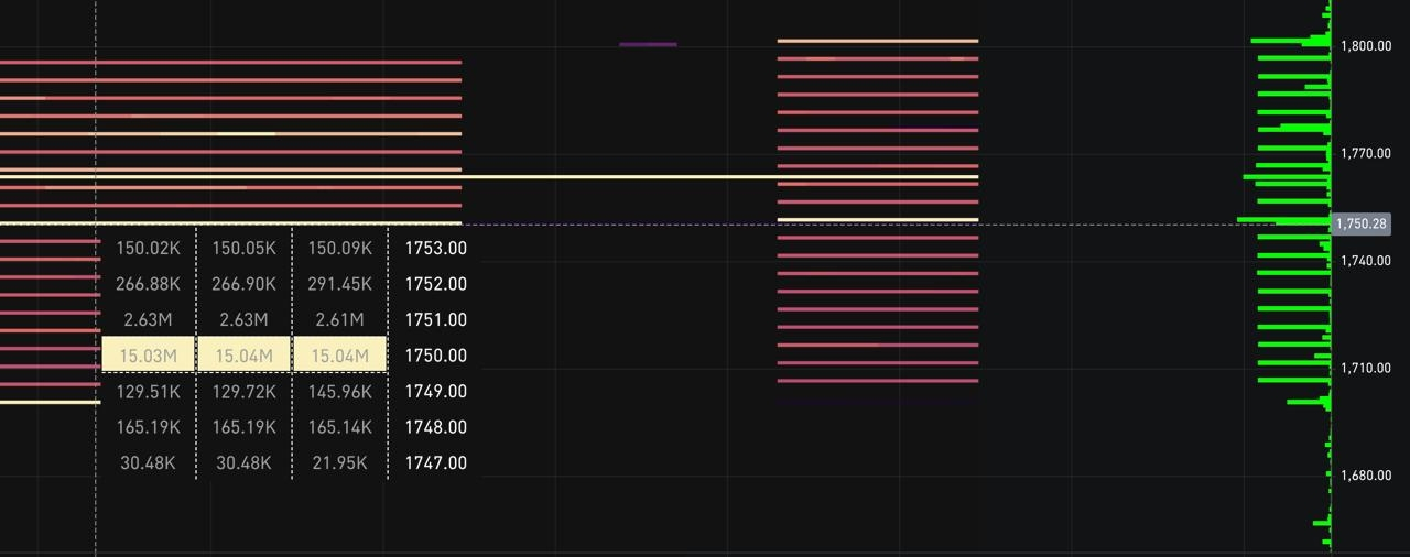 Снять локальные лои, как раз протестировать блок поддержки, а так же в отметка 1715-1800$ у нас большое скопление лимитных покупок, как на спот рынке!) Так и очень интересная картина происходит на Binance Futures! Начиная с 1800$ каждый 5 долларов движения цены, выстроена сетка с лимитных ордеров в лонг, сумарно на 150m$+