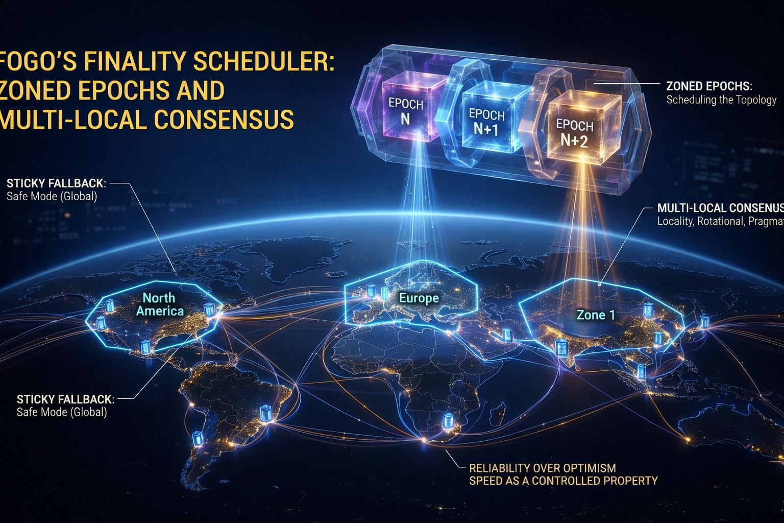 En lugar de intentar superar la geografía con código, Fogo hace de la geografía una parte central de su diseño a través de Épocas Zonas y Consenso Multi-Local.