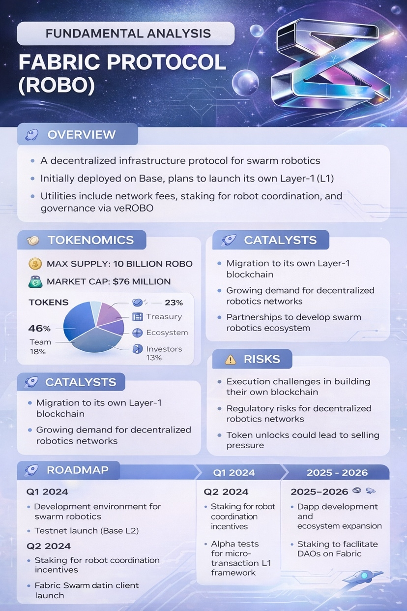#ROBO $ROBO ( @Fabric Foundation es un token cripto orientado a la utilidad ligado al ecosistema del Protocolo Fabric, que tiene como objetivo apoyar la identidad descentralizada de robots, la gobernanza de IA y la integración de blockchain. Recientemente se lanzó en intercambios importantes (Binance Alpha, Coinbase, Bitget), ampliando la liquidez y el acceso al ecosistema. La hoja de ruta de desarrollo se centra en las contribuciones de robots en cadena, incentivos de gobernanza y cronogramas de adquisición a largo plazo para la estabilidad del mercado. La adopción y el crecimiento del ecosistema siguen siendo impulsores clave.