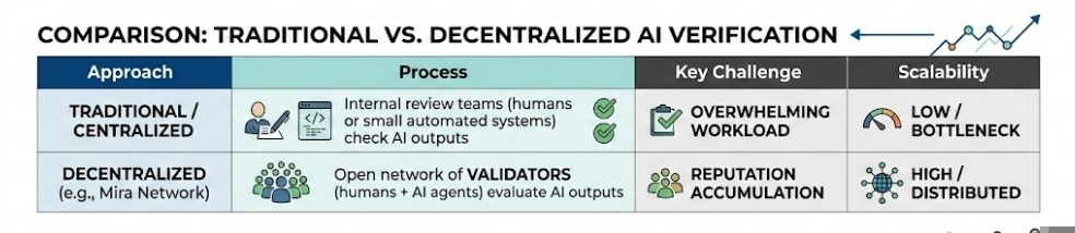 That gap between generation and verification has quietly become one of the most interesting problems in the AI space. Systems can now produce text, images, research summaries, code, and analysis at enormous speed. Yet checking the results still relies heavily on humans or small internal review systems. The imbalance keeps growing. Production accelerates, verification lags behind.