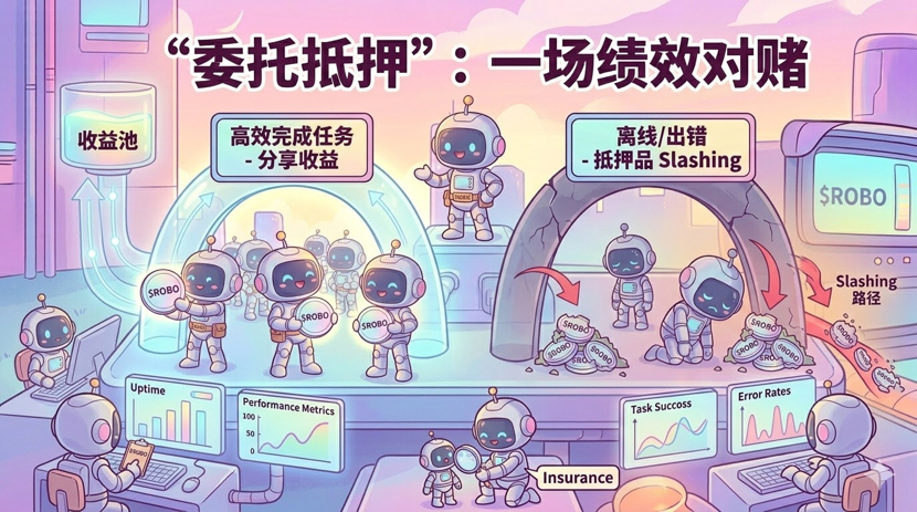 当你把 $ROBO委托给某个机器人运营商时,你以为你在理财?不,你是在对赌绩效。这和传统的节点质押完全不同: