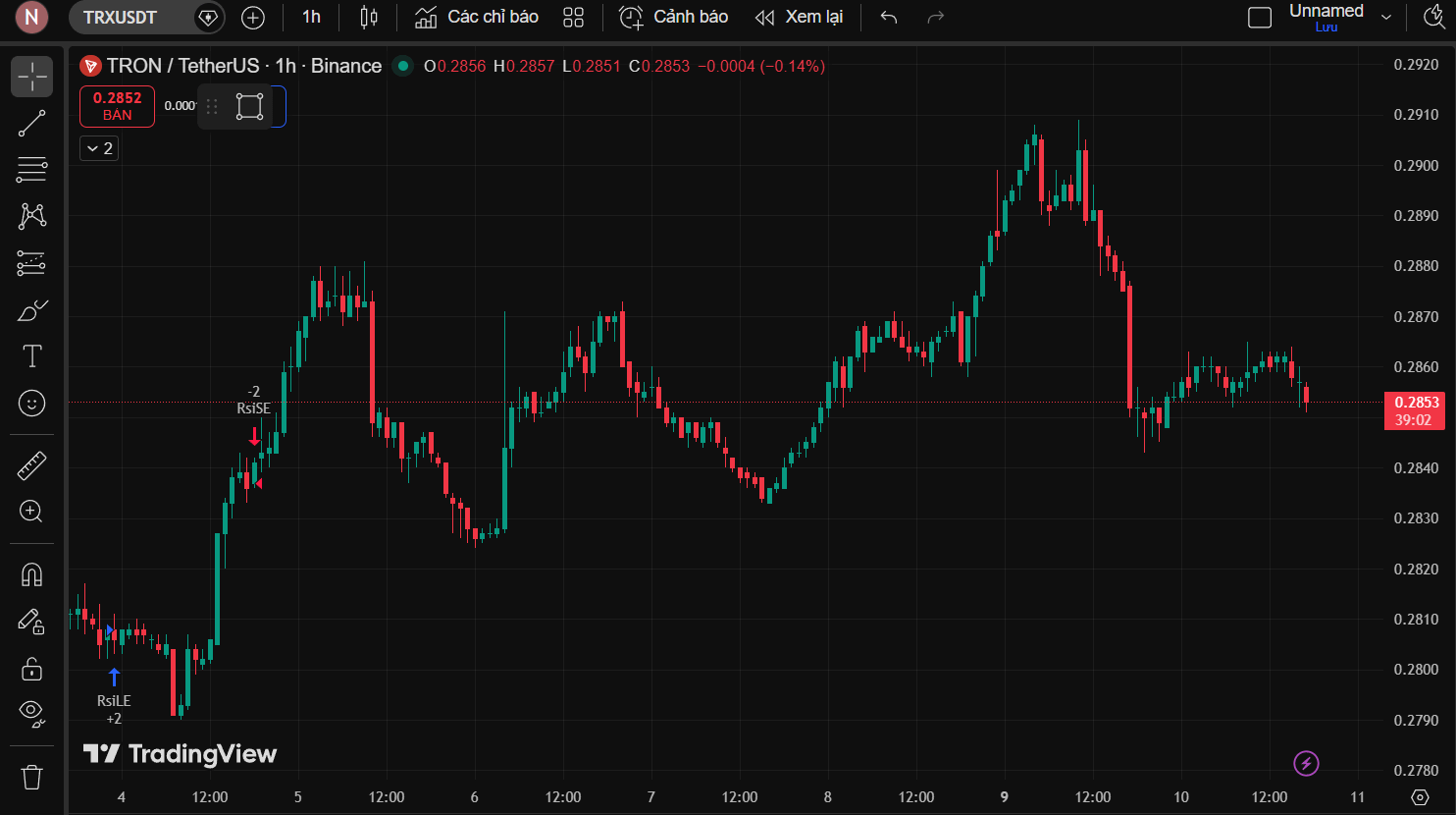 El gráfico de 1h muestra que TRX ha tenido una increíble recuperación desde la zona 0.278 después de la señal RsiLE +2. Actualmente, el precio se mantiene por encima de la fuerte banda de soporte dinámico. La estructura de mínimos más altos (Higher Lows) se mantiene, lo que indica que los toros todavía tienen el control del juego. Un período de acumulación alrededor del nivel actual será la base para una fuerte ruptura por encima de la zona de resistencia psicológica 0.29.