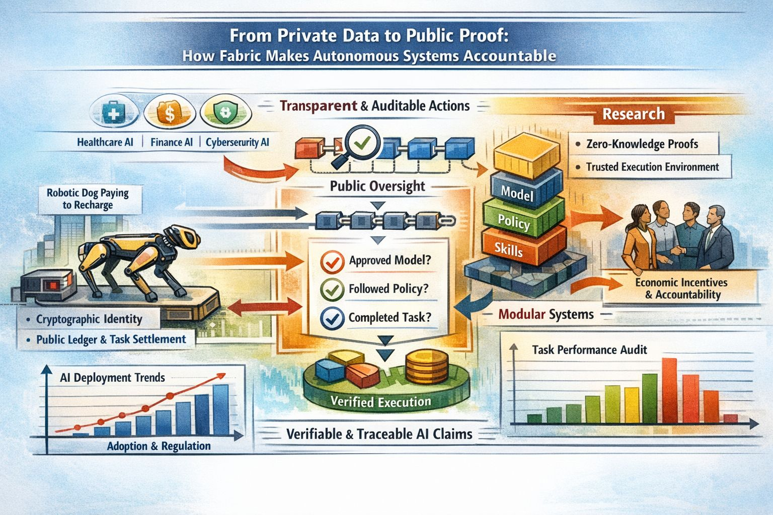 What keeps me interested is the move from private data to public proof because that is a cleaner and more realistic standard. I do not want every sensor reading personal detail or internal record exposed just so a machine can be audited. I do want claims that can be checked in a credible way. I want to know whether the system used an approved model whether it followed the task policy and whether it actually completed the work it is being credited or paid for. Fabric’s roadmap points in that direction through robot identity task settlement and structured data collection while the broader research world is also spending more time on verifiable and auditable AI systems that preserve privacy through tools such as zero knowledge cryptography trusted execution environments and stronger delegation controls. That broader trend matters to me because it suggests Fabric is not a strange side road. It sits inside a wider shift toward evidence that other researchers are trying to formalize as well.
