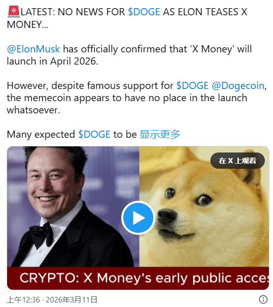 埃隆·马斯克推出的 X Money 不包含狗狗币,这影响了交易者的情绪和市场活动。