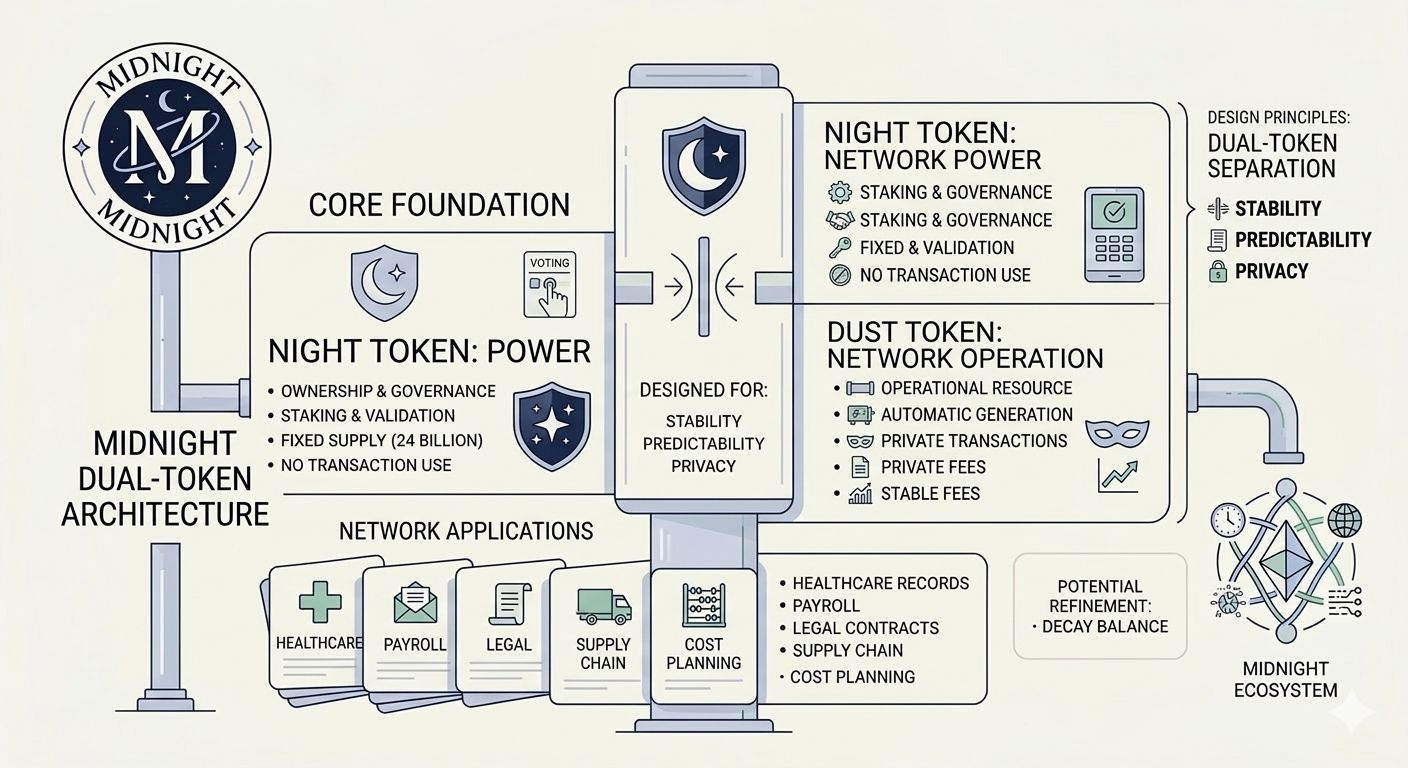 By keeping $NIGHT and DUST separate, Midnight solves the old problem where trading demand makes network fees go crazy. Now, businesses can actually plan their costs because they won't be hit with unexpected gas fee surges.