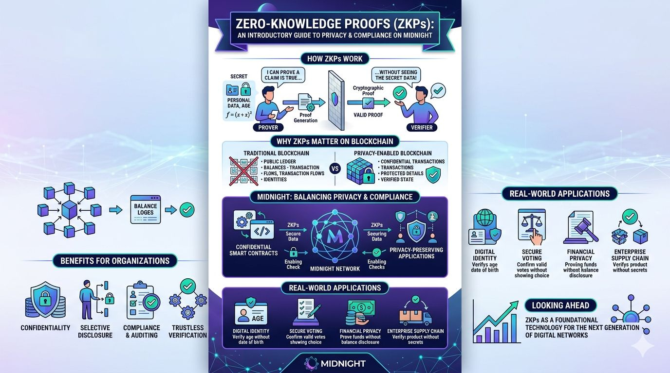As blockchain technology grows, one challenge continues to stand out: balancing transparency with privacy. Public blockchains allow anyone to view transactions, which builds trust but also exposes sensitive information. Businesses, institutions, and individuals often require confidentiality while still proving that rules are being followed. This is where Zero-Knowledge Proofs (ZKPs) become incredibly important. Platforms like Midnight are exploring how this technology can protect privacy while still ensuring compliance and accountability.