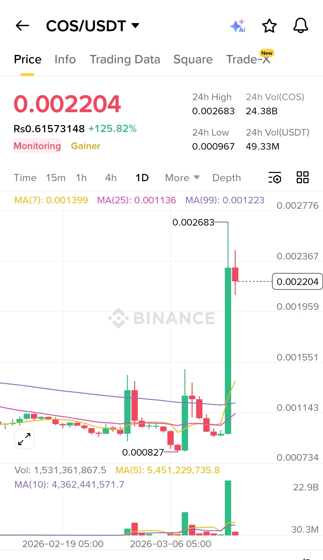 COS is a high-reward speculative play. The integration of AI and SocialFi is a legitimate fundamental shift, but the Monitoring Tag means you should never "all-in." Use trailing stop-losses to protect your gains and stay tuned to official Binance announcements regarding its status.