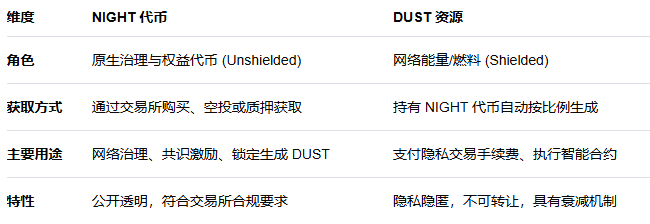 这种设计的妙处在于:即使 NIGHT 代币 $NIGHT 价格大幅波动,网络的使用成本(DUST 的消耗)依然可以保持相对稳定,为企业级应用提供了可预测的运营成本。