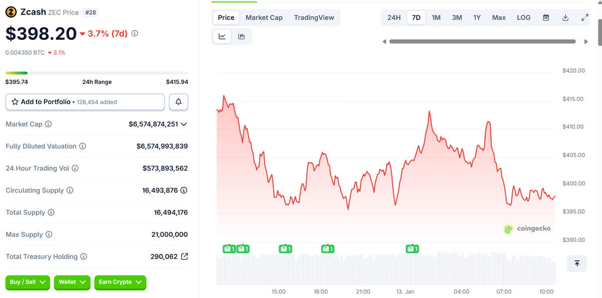 El precio de Zcash, una criptomoneda centrada en privacidad que utiliza tecnología de prueba de conocimiento cero para habilitar transacciones blindadas, ha permanecido cerca de los niveles recientes tras una recuperación cerca de las zonas de resistencia.