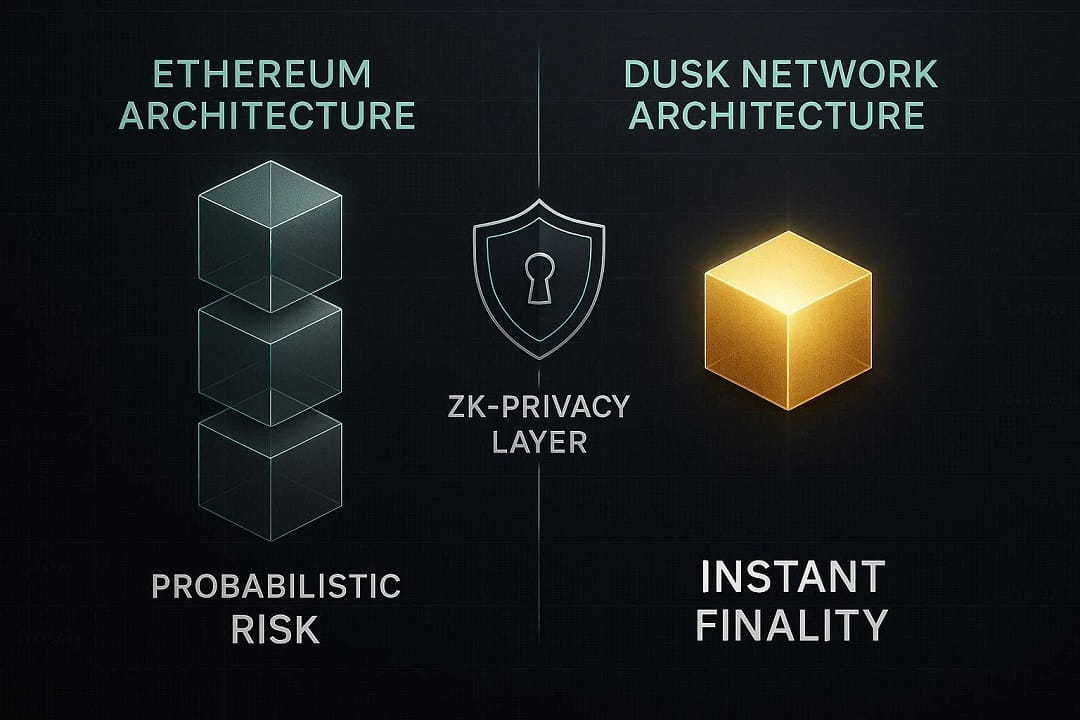 El mecanismo de consenso SBA es una evolución especializada de la Prueba de Participación. A diferencia del modelo de Gas de Ethereum y los tiempos de confirmación de bloques, que pueden fluctuar durante períodos de alta congestión de la red, Dusk proporciona Finalidad Instantánea. Una vez que un bloque es validado por el comité en la Red Dusk, es matemáticamente imposible que ese bloque sea revertido. Este "Liquidación Atómica" es el requisito básico para la industria financiera. Para un Creadores de Mercado o un Corredor Principal, la diferencia entre una ventana probabilística de 12 segundos y una finalización determinista de menos de un segundo no es solo una cuestión de velocidad—es una cuestión de solvencia y gestión de riesgos.