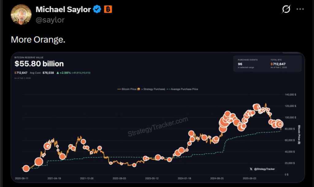 En un tweet del domingo, Saylor compartió una imagen del Saylor Tracker acompañada de la frase “Más Naranja.” El tracker representa visualmente las adquisiciones históricas de Bitcoin, y la publicación ha sido ampliamente interpretada por los observadores del mercado como una señal de compromiso a largo plazo en lugar de una reacción a la volatilidad a corto plazo.