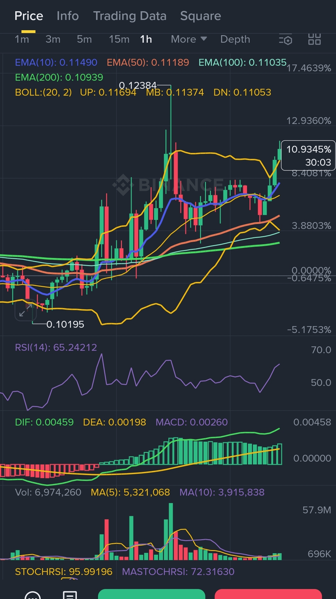 · 🎯 Action des Prix : Négocié à 0,11804 $ (+4,39 %). Il a franchi les EMA clés, montrant un momentum haussier à très court terme.