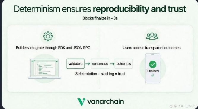 Vanar Chain is built around a powerful principle: finality must be fast, deterministic, and unquestionable. The network enforces approximately 3-second finality through strict quorum thresholds, deterministic validator rotation, and automatic slashing mechanisms. These are not marketing features — they are structural safeguards.